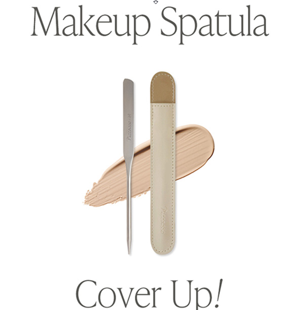 • Apply the product at a 90-degree angle on the corner of the spatula and spread it thinly on the desired area, and use a sponge or brush to adhere to the skin. After using the spatula, wipe it clean and store it in the case