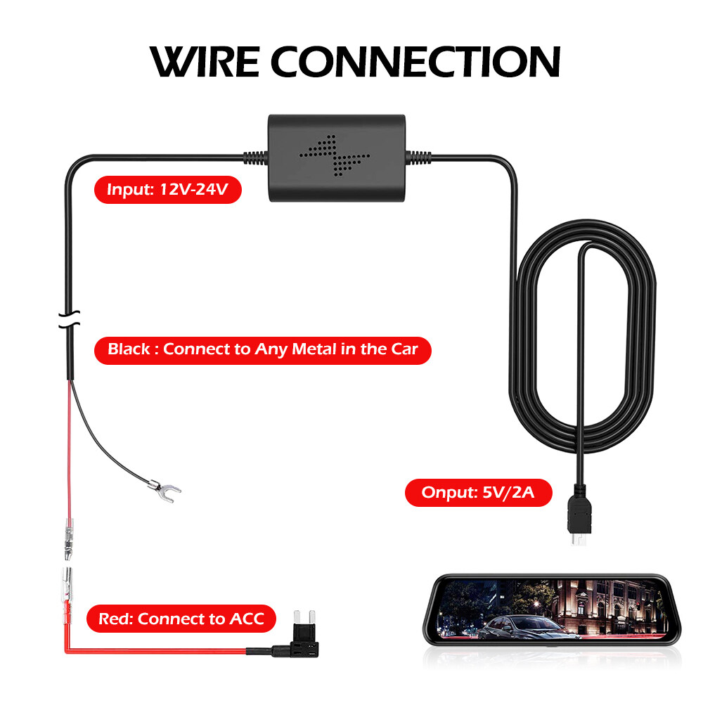 Universal HardWire Fuse Box Car Recorder Dash Cam Hard Wire Kit + Mini USB
